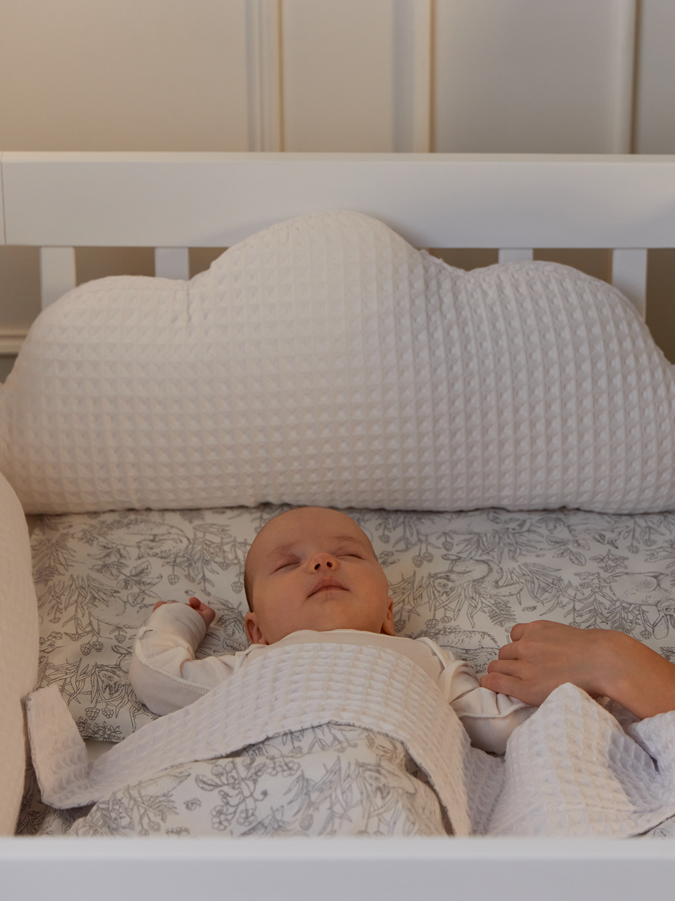 Выполненный в виде легких воздушных облаков бортик заинтересует кроху как игровой элемент и добавит уюта, а его супермягкая форма защитит от травм, ушибов и не даст провалиться или застрять в перегородках.