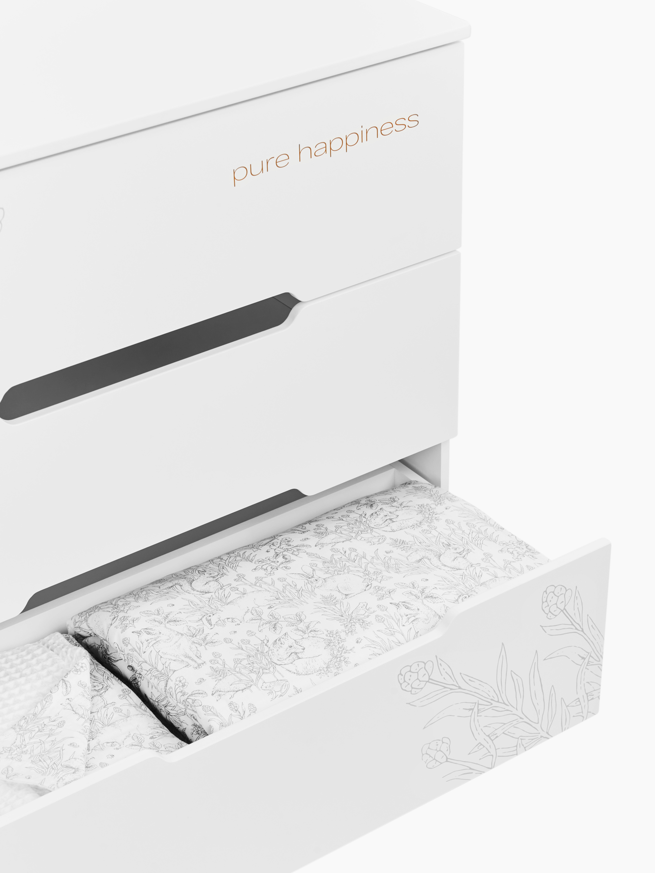 Комод Fioki станет важной частью вашей детской комнаты. Просторные ящики обеспечат хранение всех необходимых вещей для малыша: средств по уходу, пелёнок, одежды и постельного белья. Ящики легко и бесшумно открываются, не нарушая сон ребёнка, а ножки из натурального дерева придают комоду дополнительную устойчивость. Съемный пеленальный столик делает уход за малышом еще проще и удобнее, а его бортики обеспечивают дополнительную безопасность.
