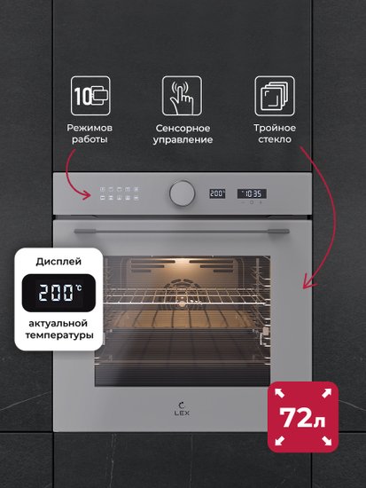 • Объём духового шкафа 72 л