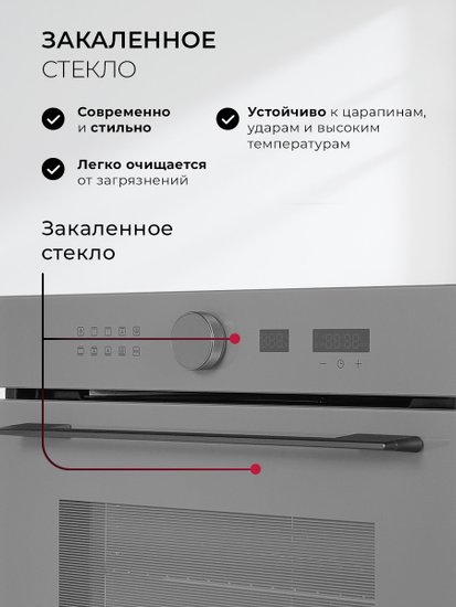 • Режимы работы двухсторонний нагрев, большой гриль, вентиляционный нагрев, гриль + конвекция, нижний нагрев + конвекция, нижний + вентиляционный нагрев, двухсторонний нагрев + конвекция, размораживание