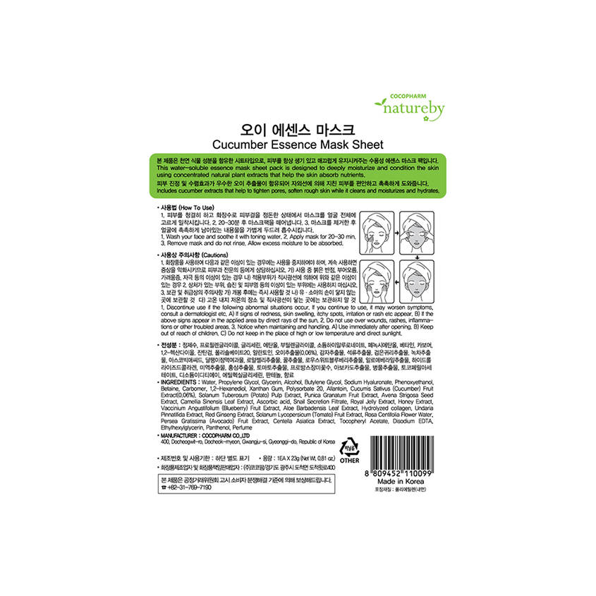 Маска для лица `COCOPHARM` с экстрактом огурца 23 г
