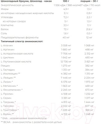 - Аминокислоты аргинин, глицин, метионин, гистидин, глутамин, валин, цистеин, аспаргин, аланин, триптофан, фенилаланин, серин, лизин, тирозин, лейцин, изолейцин, пролин, треонин Показать полностью