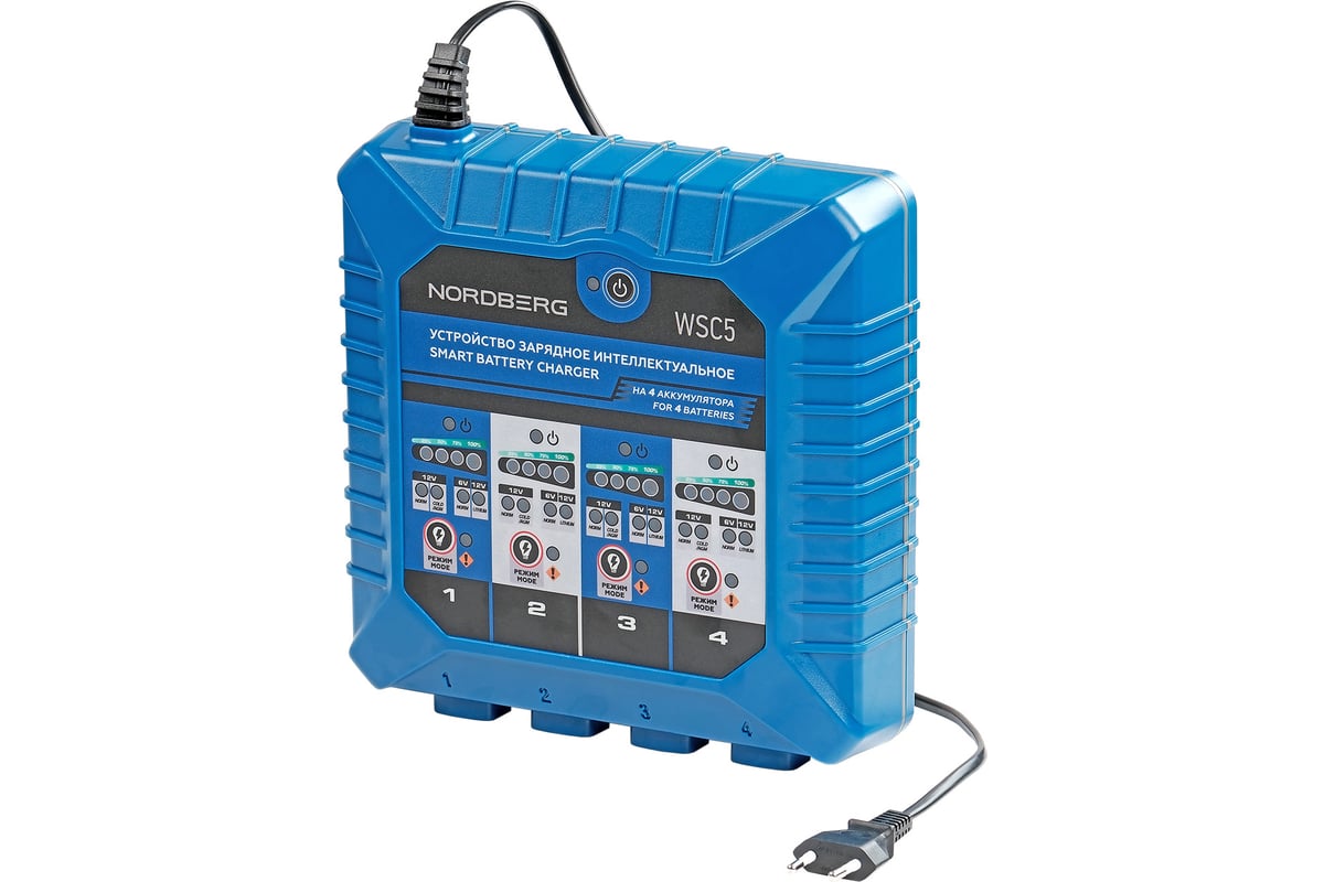 Устройство зарядное интеллектуальное NORDBERG 6/12V, на 4 аккумулятора WSC5