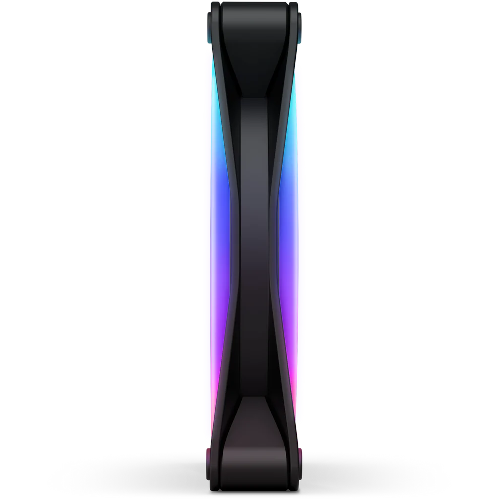 Главная особенность модели — двойная зона ARGB-подсветки: светодиоды расположены с обеих сторон вентилятора, создавая насыщенное свечение независимо от способа установки. Управление эффектами возможно через ПО NZXT CAM (при наличии совместимого контроллера).