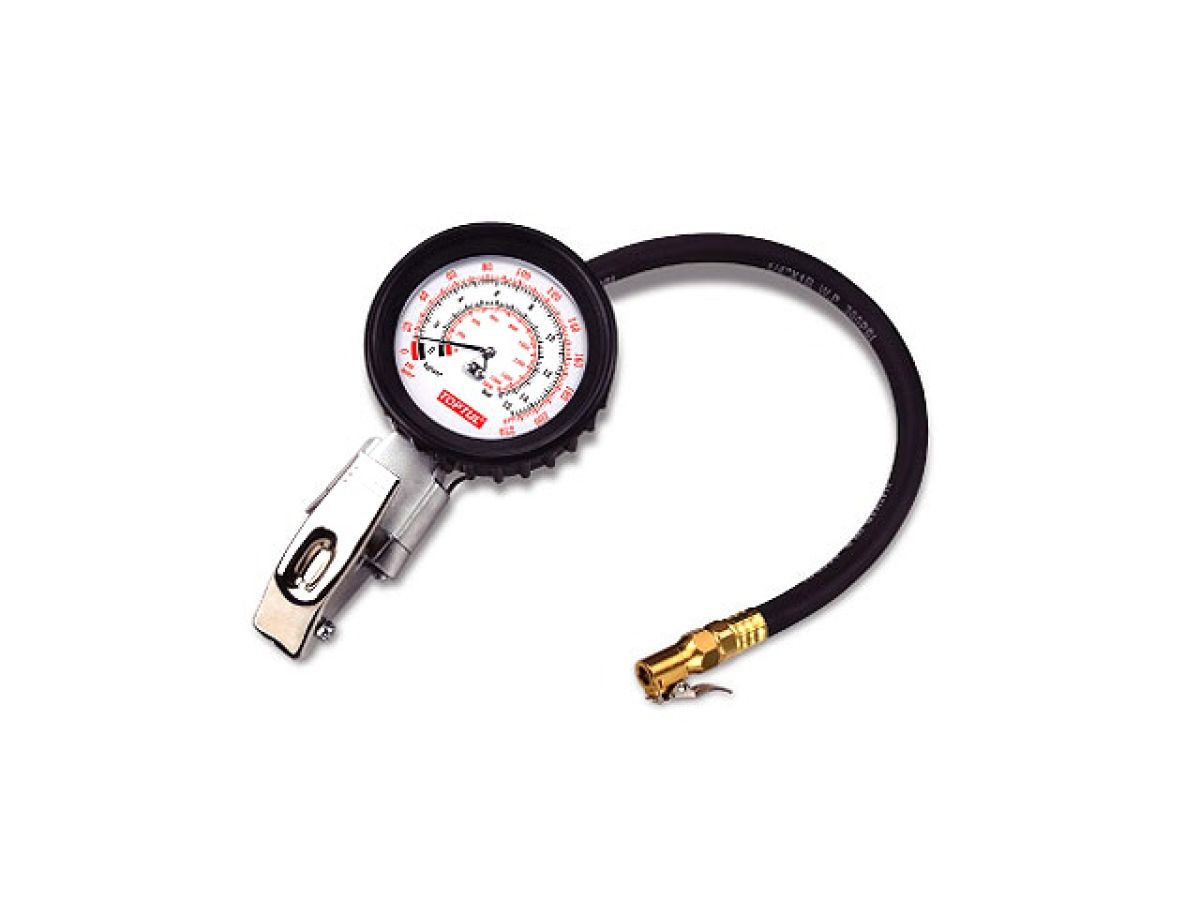Насадка для подкачки шин TOPTUL изготовлена из высококачественных материалов, имеет высокую степень надежности и долговечности. Насадка оснащена манометром для контроля давления в шинах и гибким резиновым шлангом с быстросъемным наконечником для доступа к глубоко утопленным ниппелям и ниппелям, расположенным на внутренних дисках спаренных колес грузовых автомобилей. Манометр имеет защитный резиновый кожух и способен измерять давление в диапазоне 0-220 PSi, 0-15 кг/см², 0-15 bar или 0-1500 kPa. Насадка соединяется с прочим оборудованием посредством внутренней резьбы размером G1/4". Рекомендуется для профессионального использования.