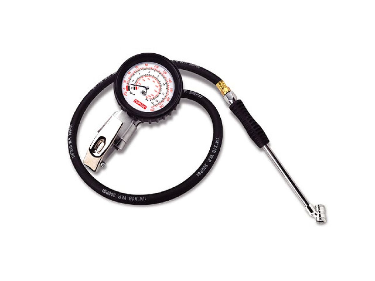 Насадка для подкачки шин TOPTUL изготовлена из высококачественных материалов, имеет высокую степень надежности и долговечности. Насадка оснащена манометром для контроля давления в шинах и гибким резиновым шлангом с быстросъемным наконечником для доступа к глубоко утопленным ниппелям и ниппелям, расположенным на внутренних дисках спаренных колес грузовых автомобилей. На конце шланга, вместо быстросъемного наконечника расположена металлическая трубка удлинитель, добавляющая к шлангу еще 25 см. Манометр имеет защитный резиновый кожух и способен измерять давление в диапазоне 0-220 PSi, 0-15 кг/см², 0-15 bar или 0-1500 kPa. Насадка соединяется с прочим оборудованием посредством внутренней резьбы размером G1/4". Рекомендуется для профессионального использования.