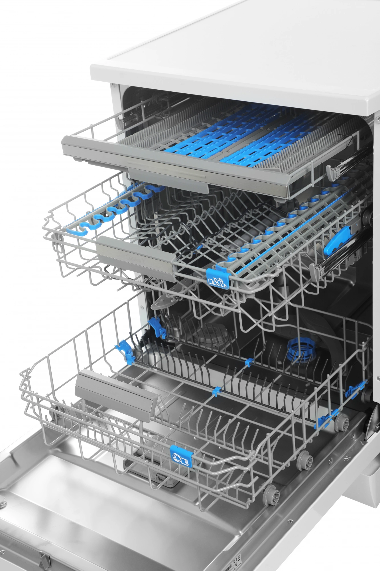 • Внутренняя конструкция корзина для столовых приборов, полки для кружек, регулируемая по высоте корзина для посуды