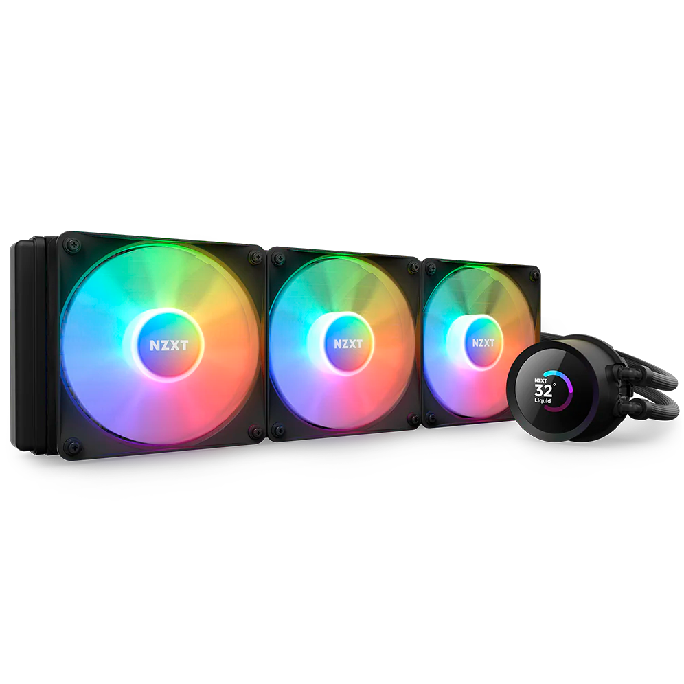 Система жидкостного охлаждения для ПК/ Water Cooling System NZXT Kraken 360 RGB (270W, 360mm, LED temp., Black, RGB/ Fans: 3x120mm, 78.86CFM, 33.88dBA, 1800RPM/ Pump height 55.97mm, 2800RPM, Rad thickness 27mm/ S: 1851, 1700, 1200, 115X, AM5, AM4)