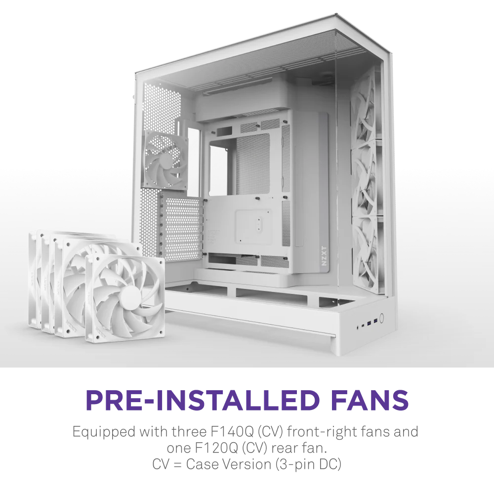Корпус без блока питания/ Case NZXT H9 Flow (2025), Midi-Tower, TG, 3x140mm + 1x120mm, 2xUSB-A 3.2 + 1xUSB-C 3.2, E-ATX, ATX, mATX, mITX White