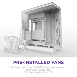 Корпус поставляется с тремя предустановленными вентиляторами 140 мм и одним 120 мм, что обеспечивает отличную циркуляцию воздуха прямо из коробки. Возможность установки дополнительных вентиляторов и радиаторов СВО делает его подходящим для производительных и тихих систем.