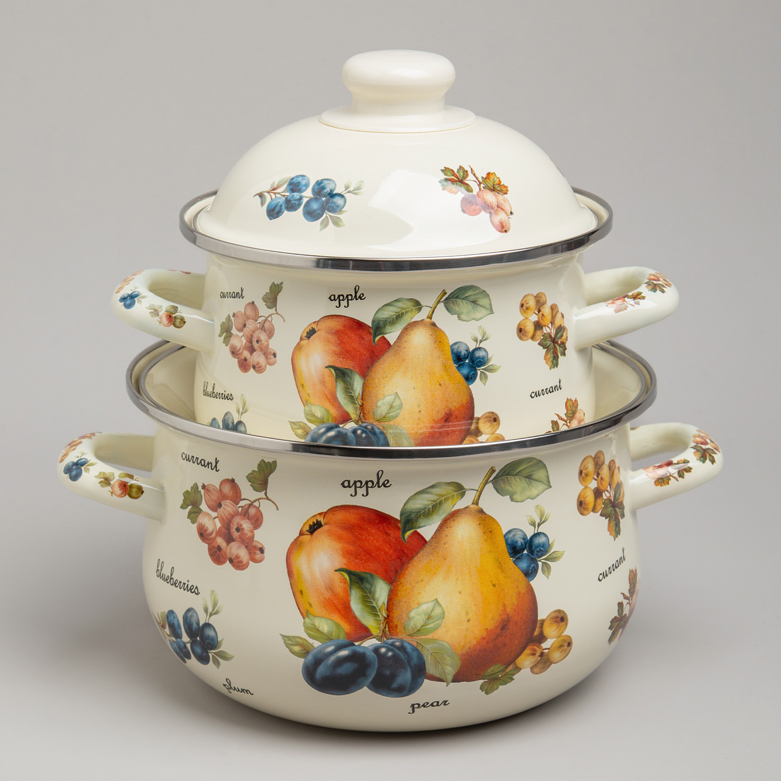 НАБОР КАСТРЮЛЬ AGNESS ЭМАЛИРОВАННЫХ СЕРИЯ "ФРУКТЫ", 4ПР. 1,5Л И 2,8Л, 16Х10СМ, 20Х12СМ 934-703