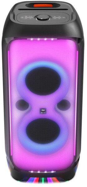Функции и особенностипыле- и влагозащита,эквалайзер,встроенная ручка для транспортировки,подсветка корпуса,проигрывание аудио по USB,функция зарядного устройства,караоке