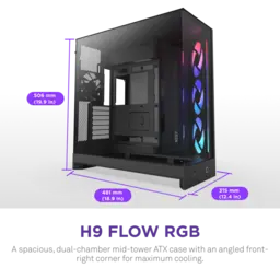 Корпус без блока питания/ Case NZXT H9 Flow RGB (2025), Midi-Tower, TG, 3x140mm RGB + 1x120mm, 2xUSB-A 3.2 + 1xUSB-C 3.2, E-ATX, ATX, mATX, mITX Black