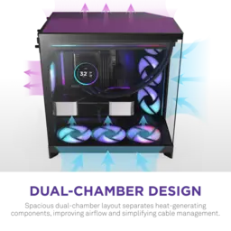 Корпус NZXT H9 Flow RGB White (CM-H92FW-R1) — это современное сочетание функциональности, продуманной конструкции и стильного дизайна с RGB-подсветкой. Модель выполнена в черном цвете и оснащена стеклянными панелями, подчёркивающими эстетику и визуальную лёгкость корпуса.