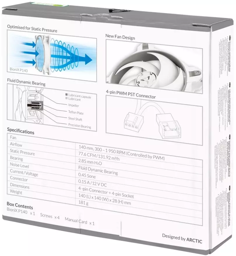 Вентилятор Arctic Cooling BioniX P140, 140х140x28, белый, 4-pin Ret (ACFAN00160A)