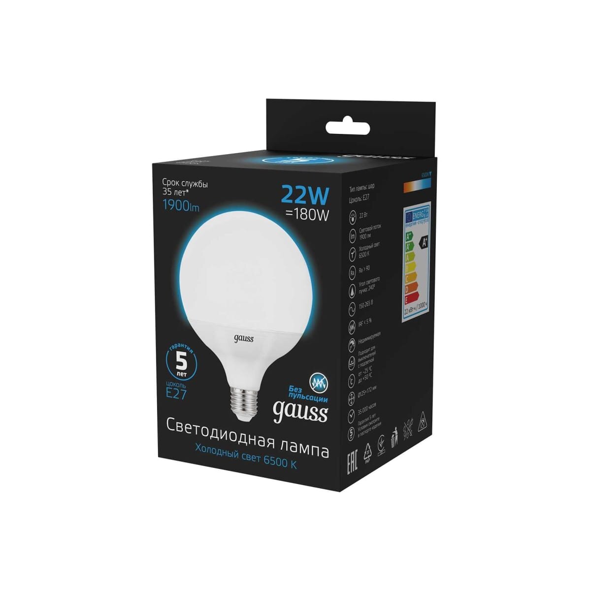 Лампа светодиодная Gauss 105102322 22Вт E27 шар 220B 6500K св.свечения белый холодный уп/1шт