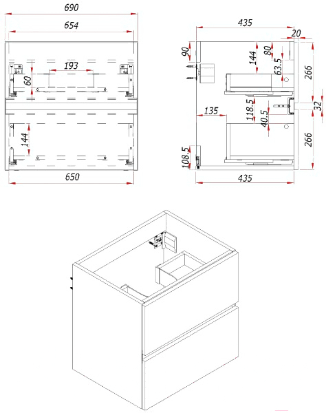 • Элементы набора тумба под умывальник (1 шт.), умывальник (1 шт.)
