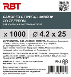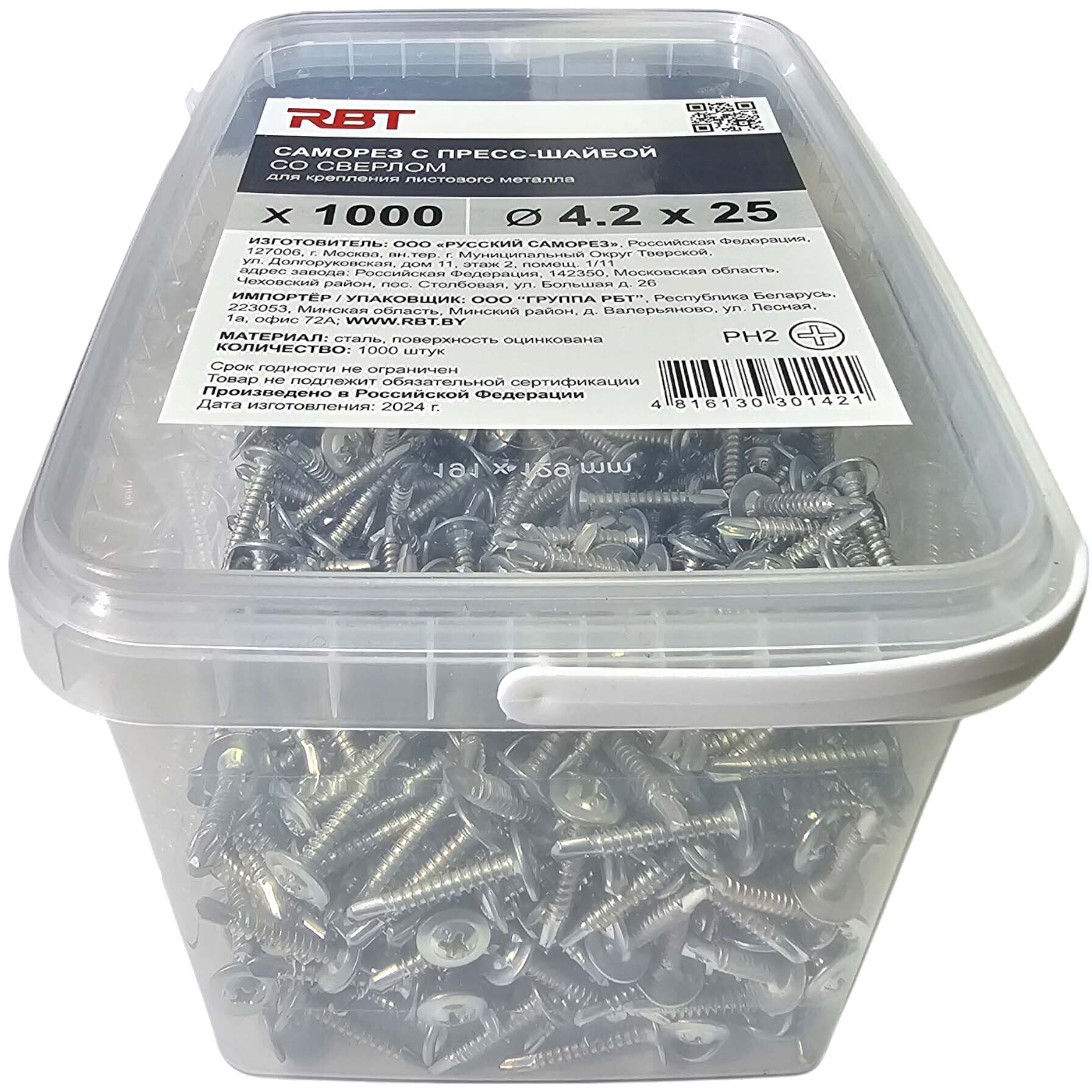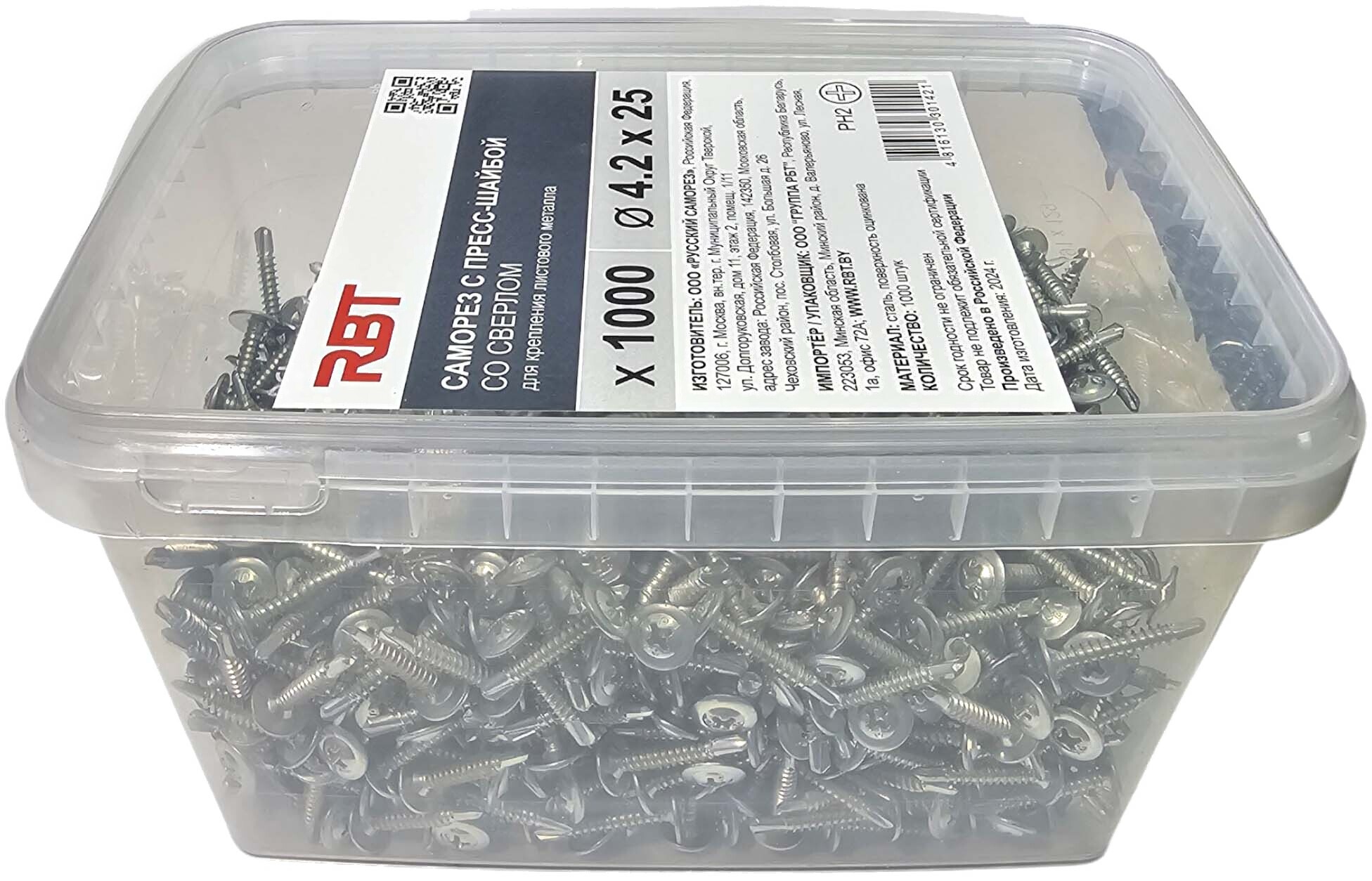 Саморез RBT СПШС/Ц 4.2х25 с прессшайбой со сверлом мелкий шаг (1000шт, оцинкованный)
