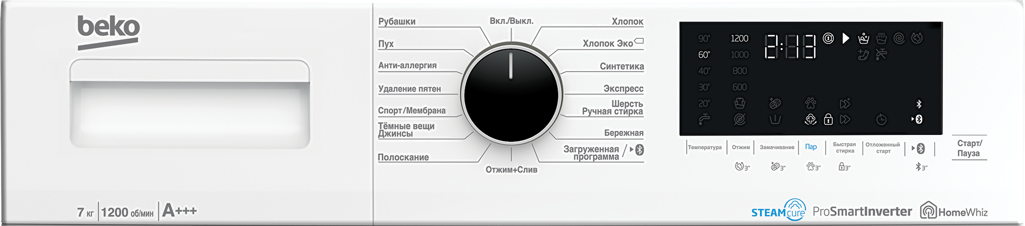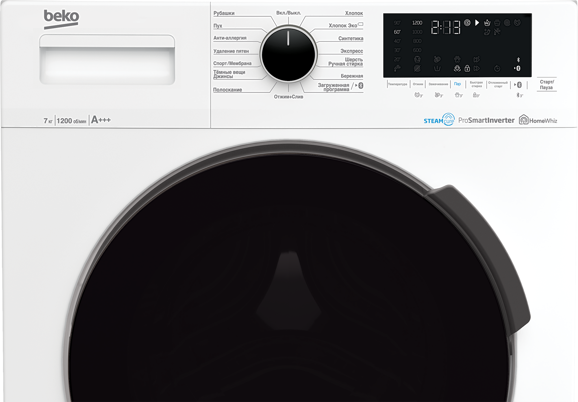 • Технологии ProSmartInverter (Beko), SteamCure (Beko), Home Whiz (Beko)