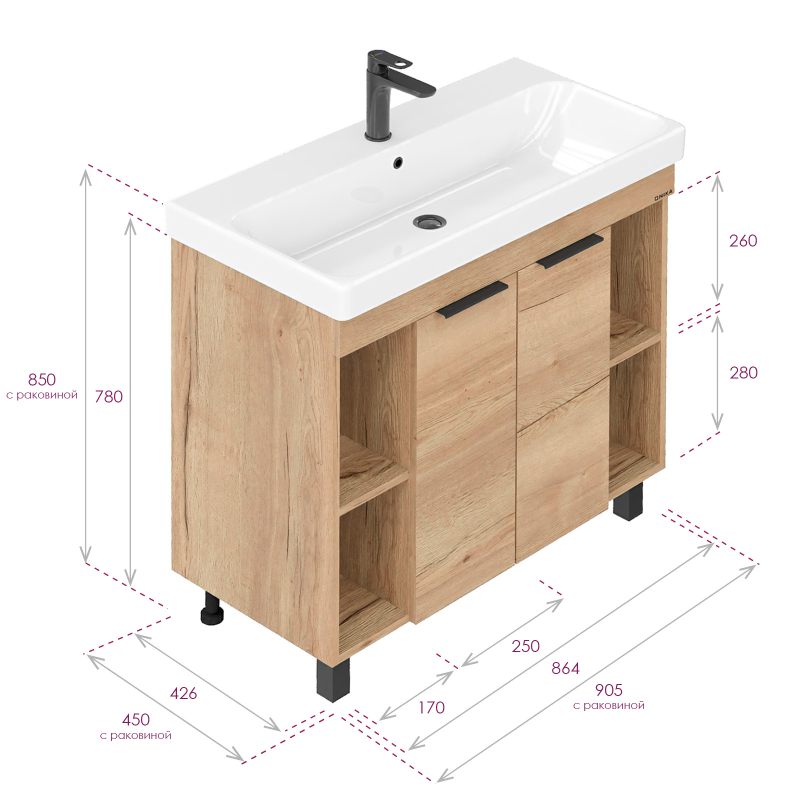 • Умывальник в комплекте нет