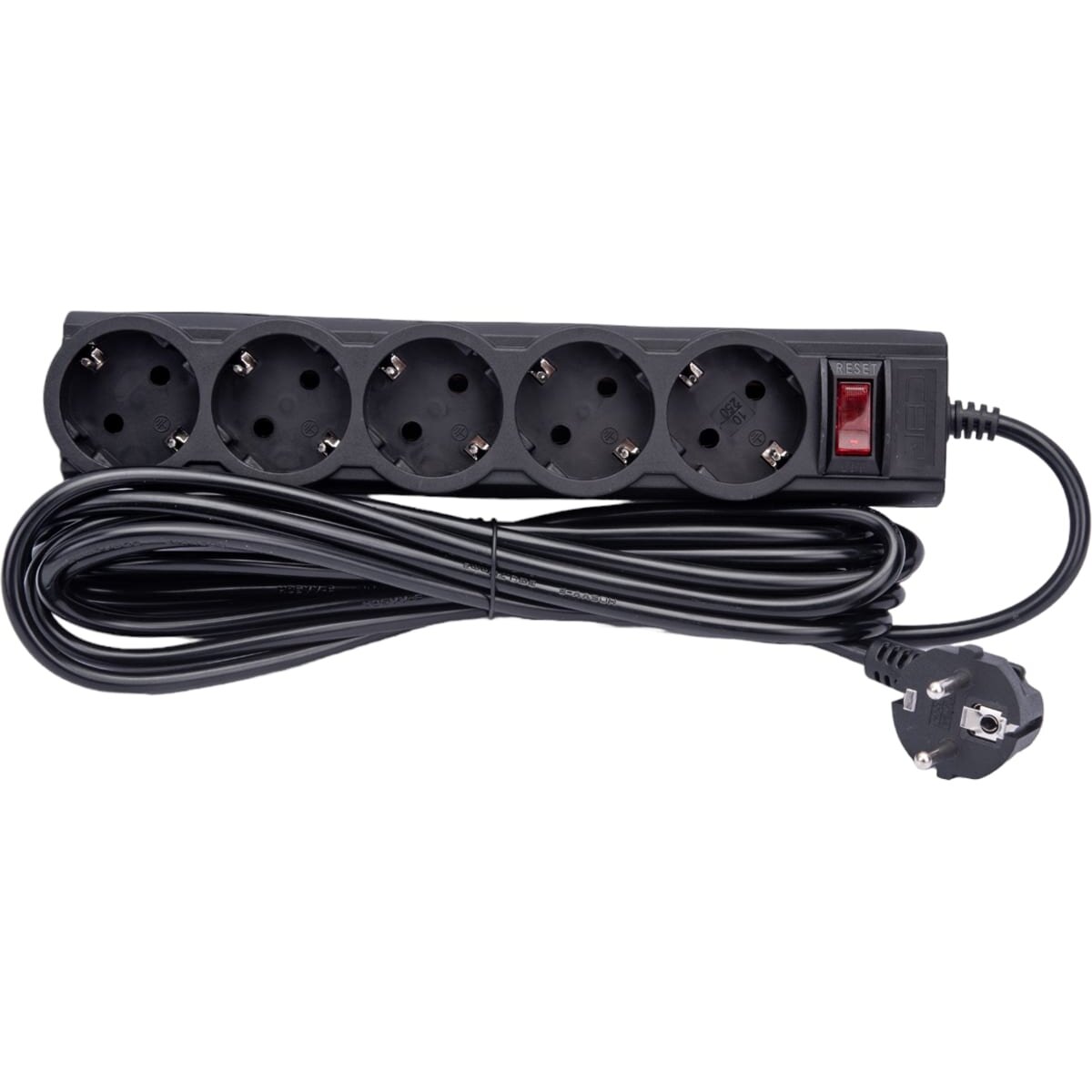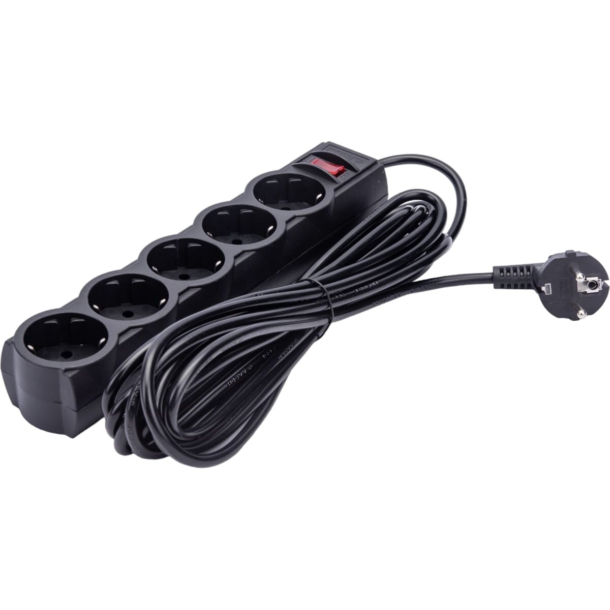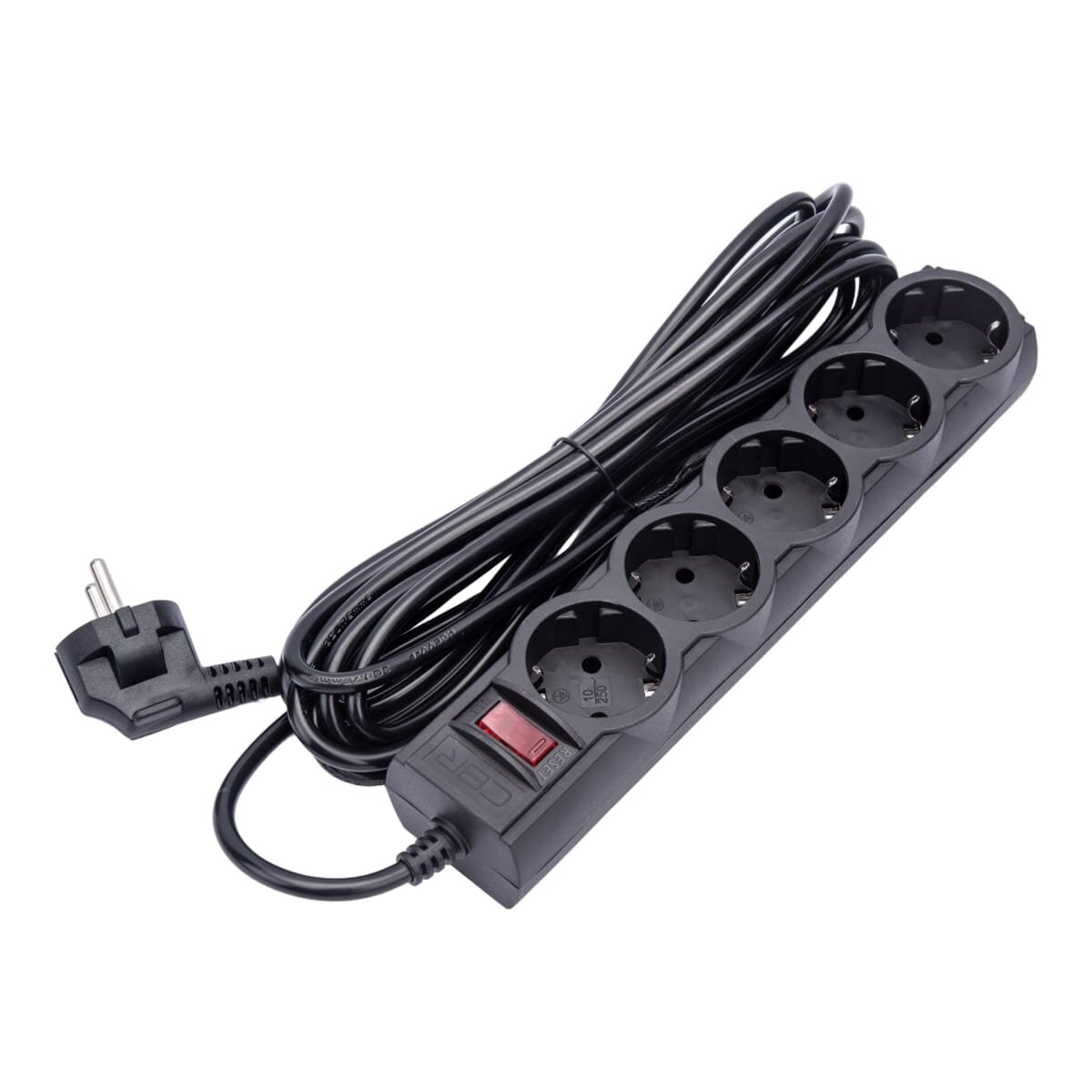 Сетевой фильтр CBR CSF 2505-5.0 Black CB, 5 евророзеток, длина кабеля 5 метров, чёрный (коробка)