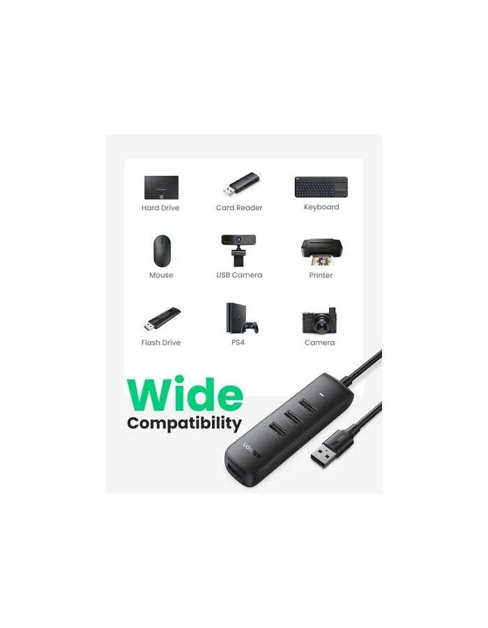 Описание товара Хаб UGREEN CM416 (80657) USB 3.0 4-Port Hub. 1 м. черный