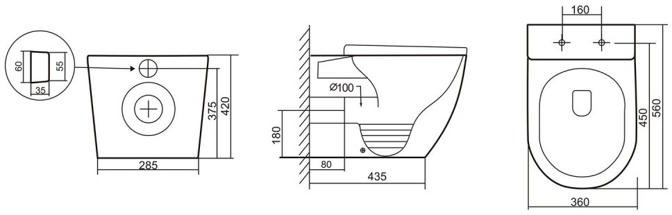 Унитаз приставной Abber Bequem AC1111TMB 36x56 сиденье Duroplast, микролифт, черный матовый (смыв торнадо)