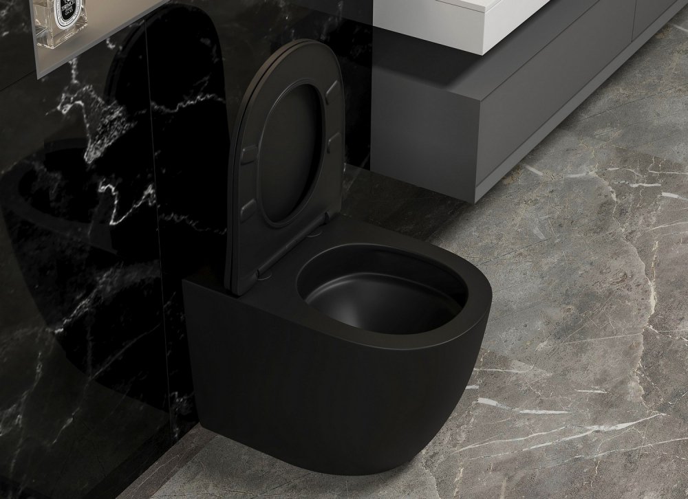 унитаз приставной abber bequem ac1111tmb 36x56 сиденье duroplast, микролифт, черный матовый (смыв торнадо)