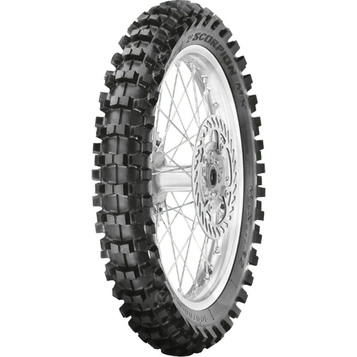 Pirelli Scorpion MX32 Mid Soft 110/90 -17 60M TT NHS — гоночные шины нового поколения для эксплуатации исключительно на гоночных трассах и треках. Не могут использоваться для езды по дорогам общественного пользования. С легкостью преодолевают бездорожье, идеально подходят для любительских и профессиональных соревнований по мотокроссу, гарантируют уверенную езду на высокой скорости и в экстремальных условиях. Производитель выпускает шины стандартных размеров, специальной версии Мud и для мини-кросса.