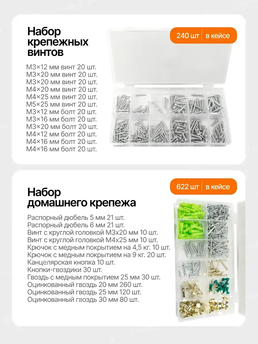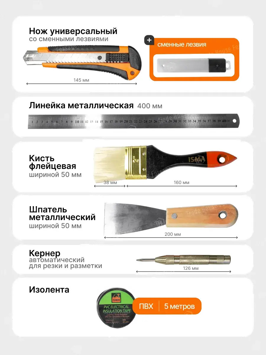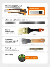 • Инструменты в наборе отвертка, молоток, нож, ножовка, напильник, паяльник