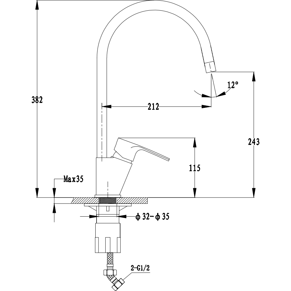• Высота излива 243 мм