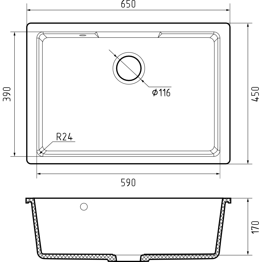 URBAN 4565 dark gray 1 чаша 570*370*170, монтаж: универсальный, материал: кварц, цвет: темно-серый