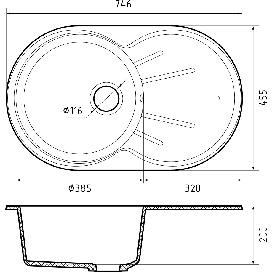 R-750L terracotta 1-чаша+крыло 746*455 мм, монтаж: врезной, материал: мрамор, цвет: терракот