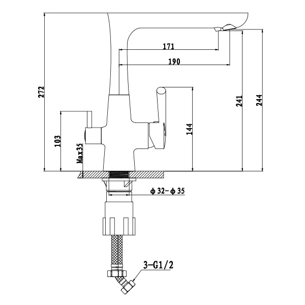 3223 topaz смеситель для кухни, Г-образный, материал: латунь, поворотный излив, цвет топаз