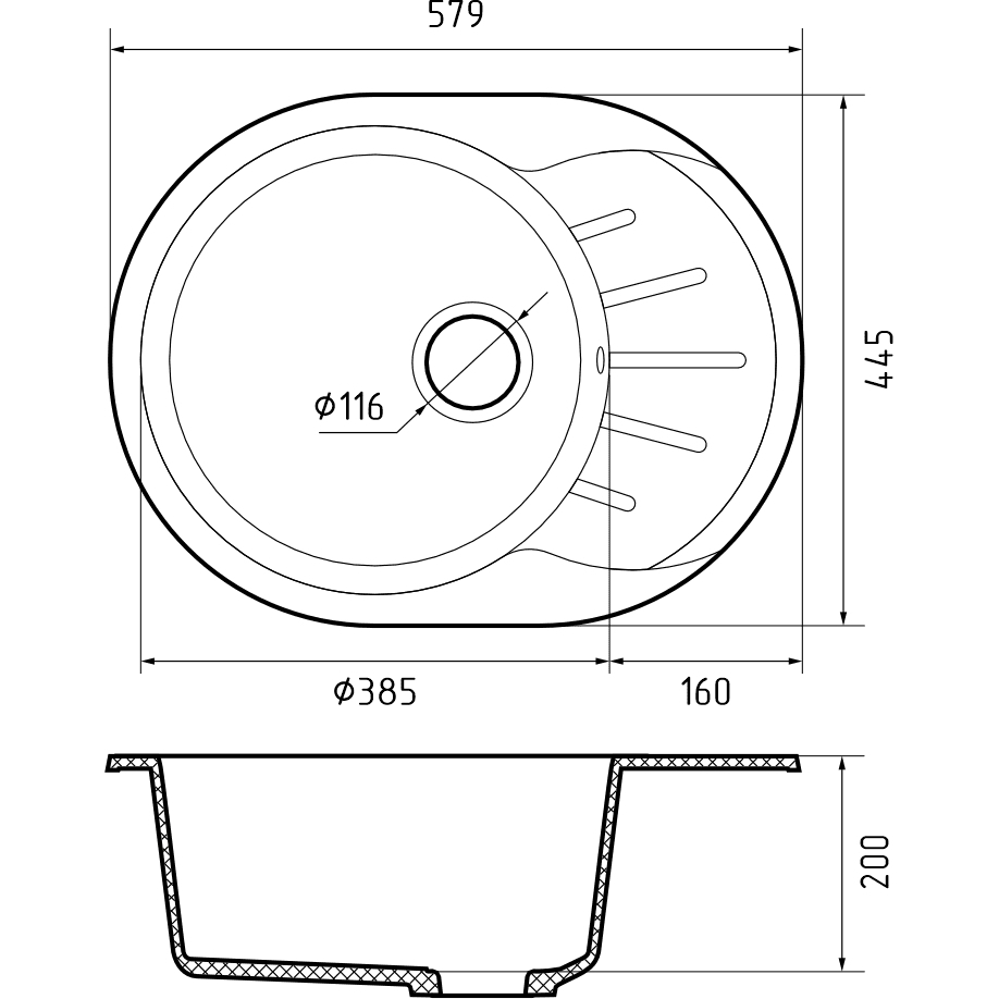 R-580L frost 1-чаша+крыло 579*445 мм, монтаж: врезной, материал: мрамор, цвет: иней