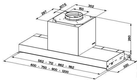Для такого типа подключения необходимо провести воздуховод к вентиляционному отверстию.Встроенный алюминиевый жироулавливающий фильтр защищает мотор и вытяжные трубы от капелек жира.