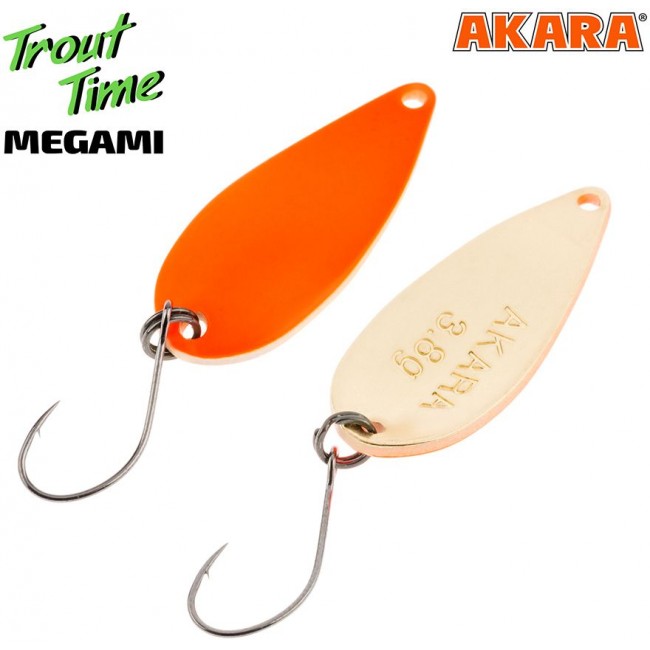 Колеблющаяся блесна Akara Megami, пожалуй, самая универсальная из форелевых блесен. Именно с нее начинается ловля на большинстве соревнований. Это одна из лучших блесен для ловли активной рыбы. А опытные спортсмены с успехом ее используют и в сложных ситуациях с плохим клевом. Мегами (Megami) хорошо подходит для ловли в разных горизонтах. Ей можно ловить и у дна, и близко от поверхности. Главное, подобрать оптимальную скорость проводки. Но с этой задачей довольно легко справляются даже начинающие рыболовы.