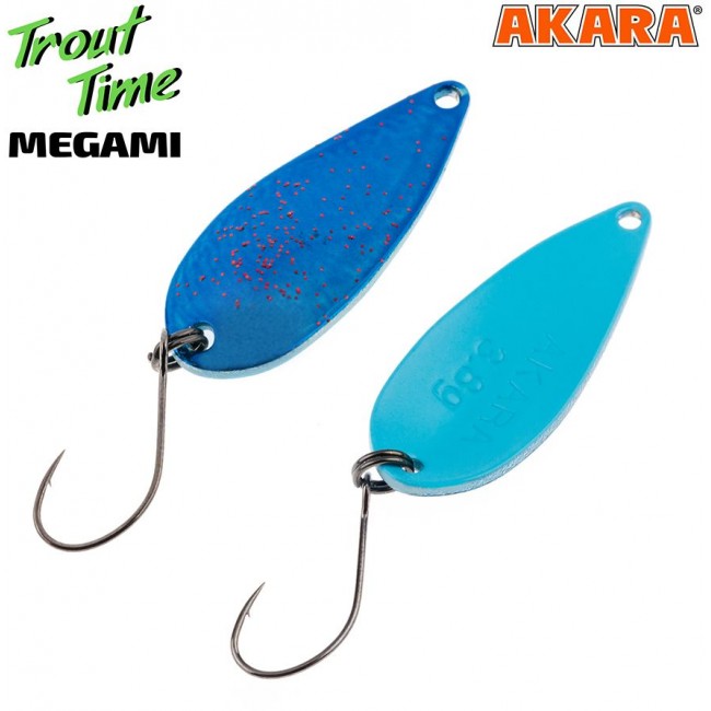 Колеблющаяся блесна Akara Megami, пожалуй, самая универсальная из форелевых блесен. Именно с нее начинается ловля на большинстве соревнований. Это одна из лучших блесен для ловли активной рыбы. А опытные спортсмены с успехом ее используют и в сложных ситуациях с плохим клевом. Мегами (Megami) хорошо подходит для ловли в разных горизонтах. Ей можно ловить и у дна, и близко от поверхности. Главное, подобрать оптимальную скорость проводки. Но с этой задачей довольно легко справляются даже начинающие рыболовы.