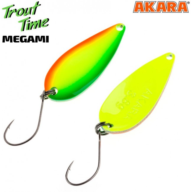 Колеблющаяся блесна Akara Megami, пожалуй, самая универсальная из форелевых блесен. Именно с нее начинается ловля на большинстве соревнований. Это одна из лучших блесен для ловли активной рыбы. А опытные спортсмены с успехом ее используют и в сложных ситуациях с плохим клевом. Мегами (Megami) хорошо подходит для ловли в разных горизонтах. Ей можно ловить и у дна, и близко от поверхности. Главное, подобрать оптимальную скорость проводки. Но с этой задачей довольно легко справляются даже начинающие рыболовы.
