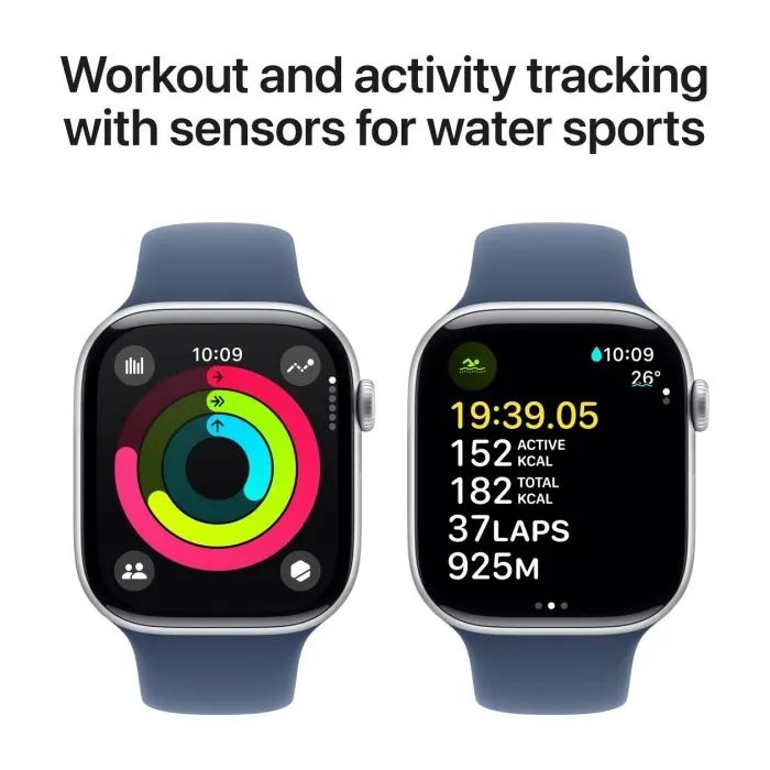 Смарт-годинник Apple Watch Series 10 GPS + Cellular 46mm Silver Aluminium Case with Denim Sport Band - S/M (MWY03QH/A)