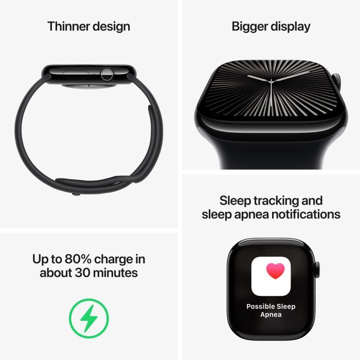 Моніторингфізичної активності , Оксиметр , Оптичний датчик серцевого ритму , підрахунок сходинок , контроль місця розташування , швидкість руху , кількість спалених калорій , пройденої відстані , відстеження сну