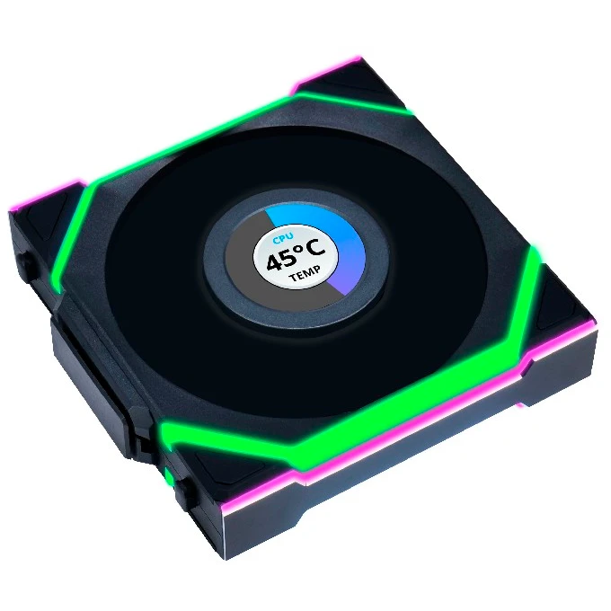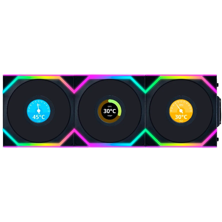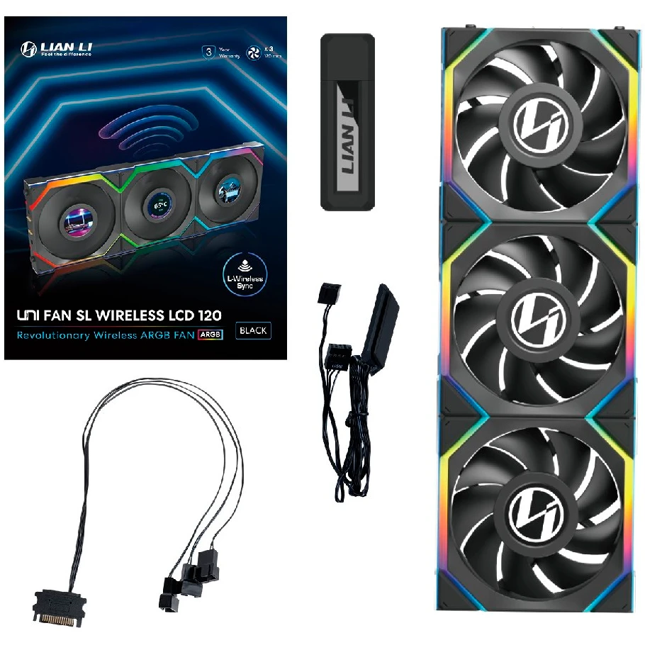 Комплект вентиляторов (3шт.) Lian Li UNI Fan SL Wireless LCD 120 (G99.12SLLCD1W3B.R0)/12SLLCD1W3B Black/120x124,5x28мм (1.6” LCD,PWM,ARGB,1900 об/мин)