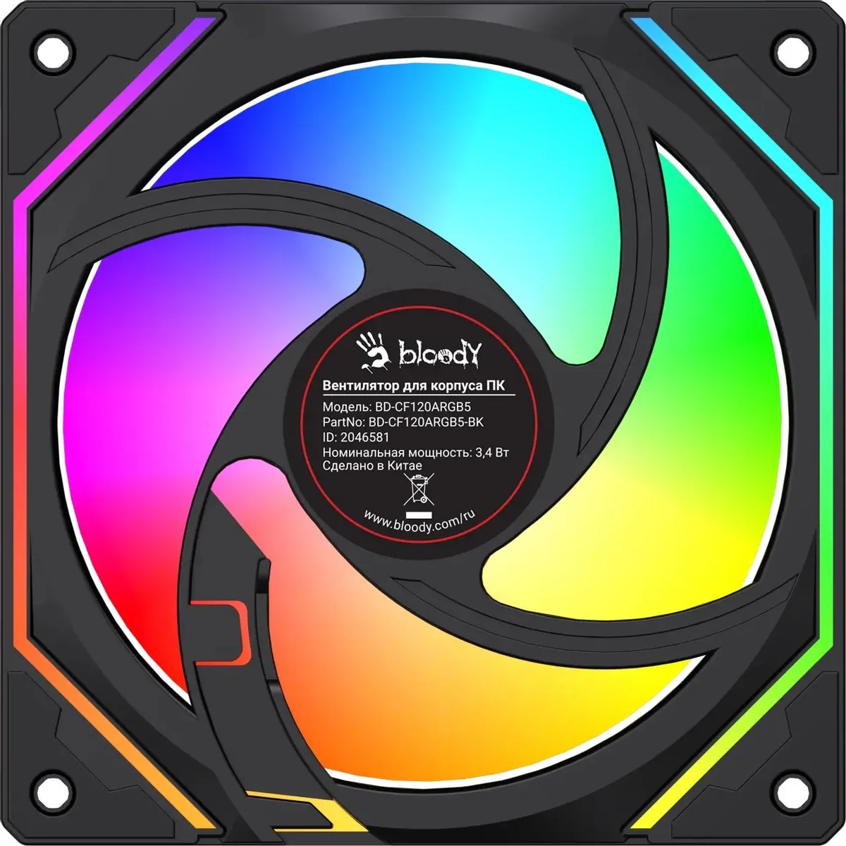 Вентилятор Bloody BD-CF120ARGB5 LCD ARGB (BD-CF120ARGB5-BK) 120х120x25 черный 4-pin 26дБ (упак. 1шт) Ret