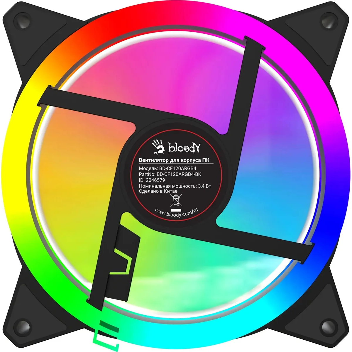 Вентилятор Bloody BD-CF120ARGB4 ARGB (BD-CF120ARGB4-BK) 120х120x25 черный 4-pin 26дБ (упак. 1шт) Ret