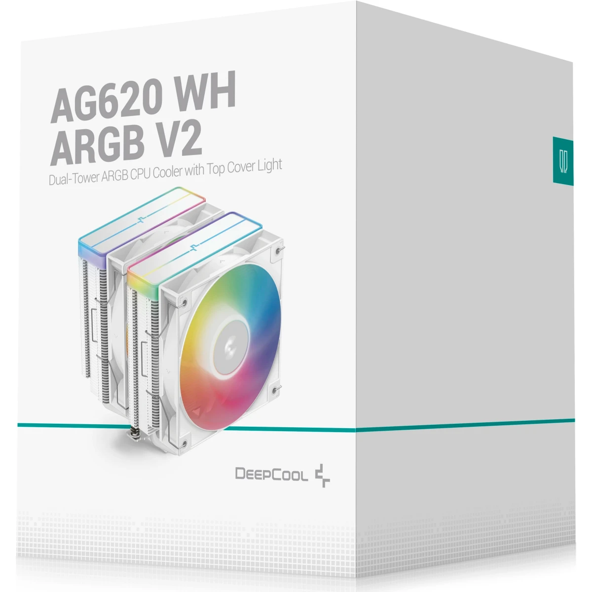 Кулер DEEPCOOL AG620 WH ARGB V2 LGA20XX/1700/1200/115X/AM5/AM4 (TDP 260W, PWM, ARGB Dual Fan 120mm, 6 тепл. трубок, белый) Ret
