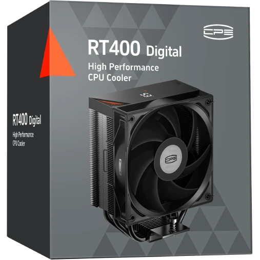 Кулер PcCooler RT400 Digital BK (230W, 4-pin PWM, LED temp., 152mm, Al/Cu, 4x6mm, 1x120mm, 73.32CFM, 34.9dBA, 2200RPM)