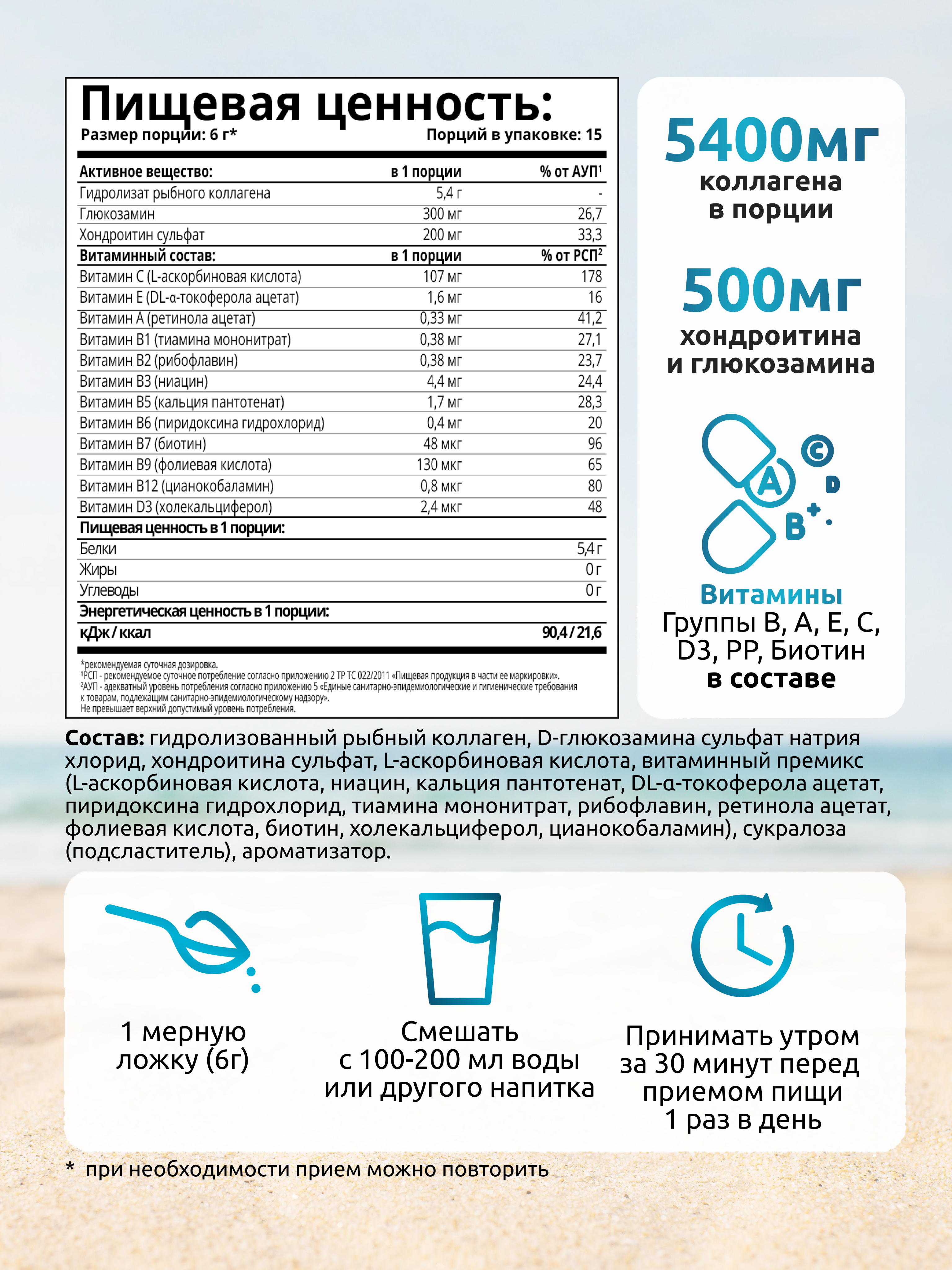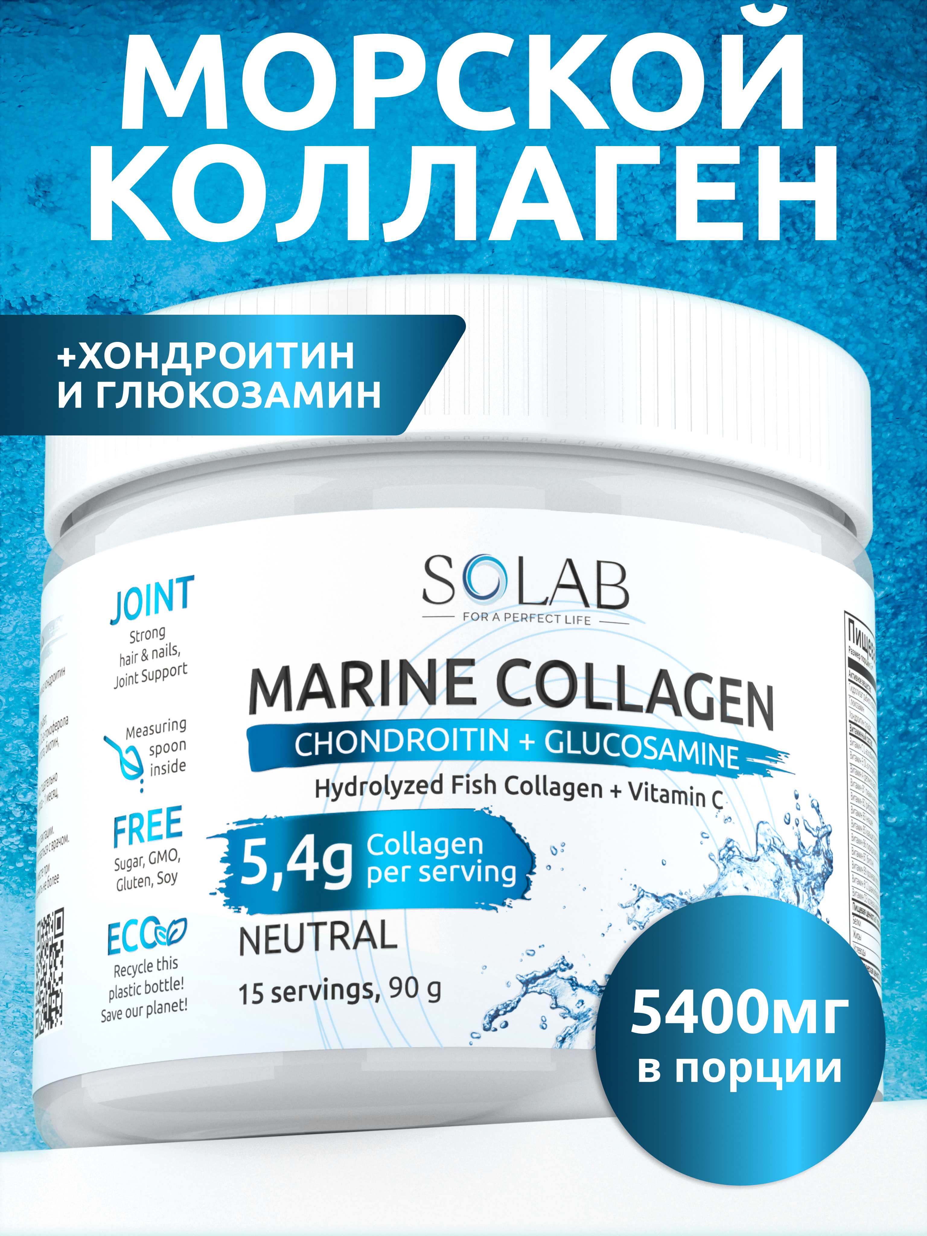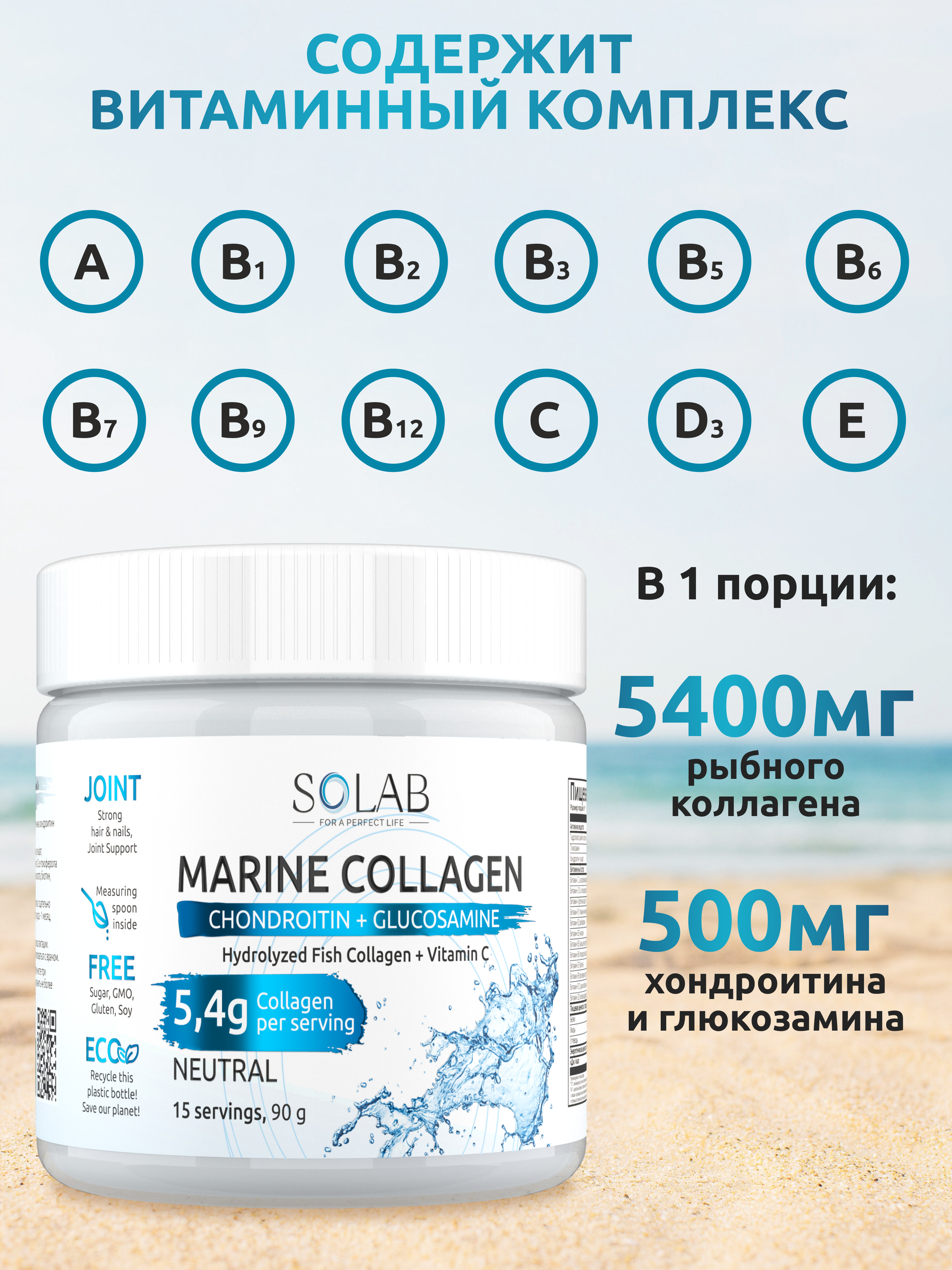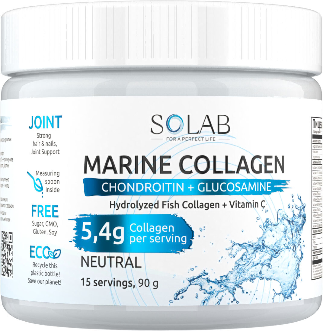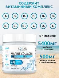 Коллаген SOLAB Морской с хондроитином, глюкозамином и витамином C (90г, нейтральный)