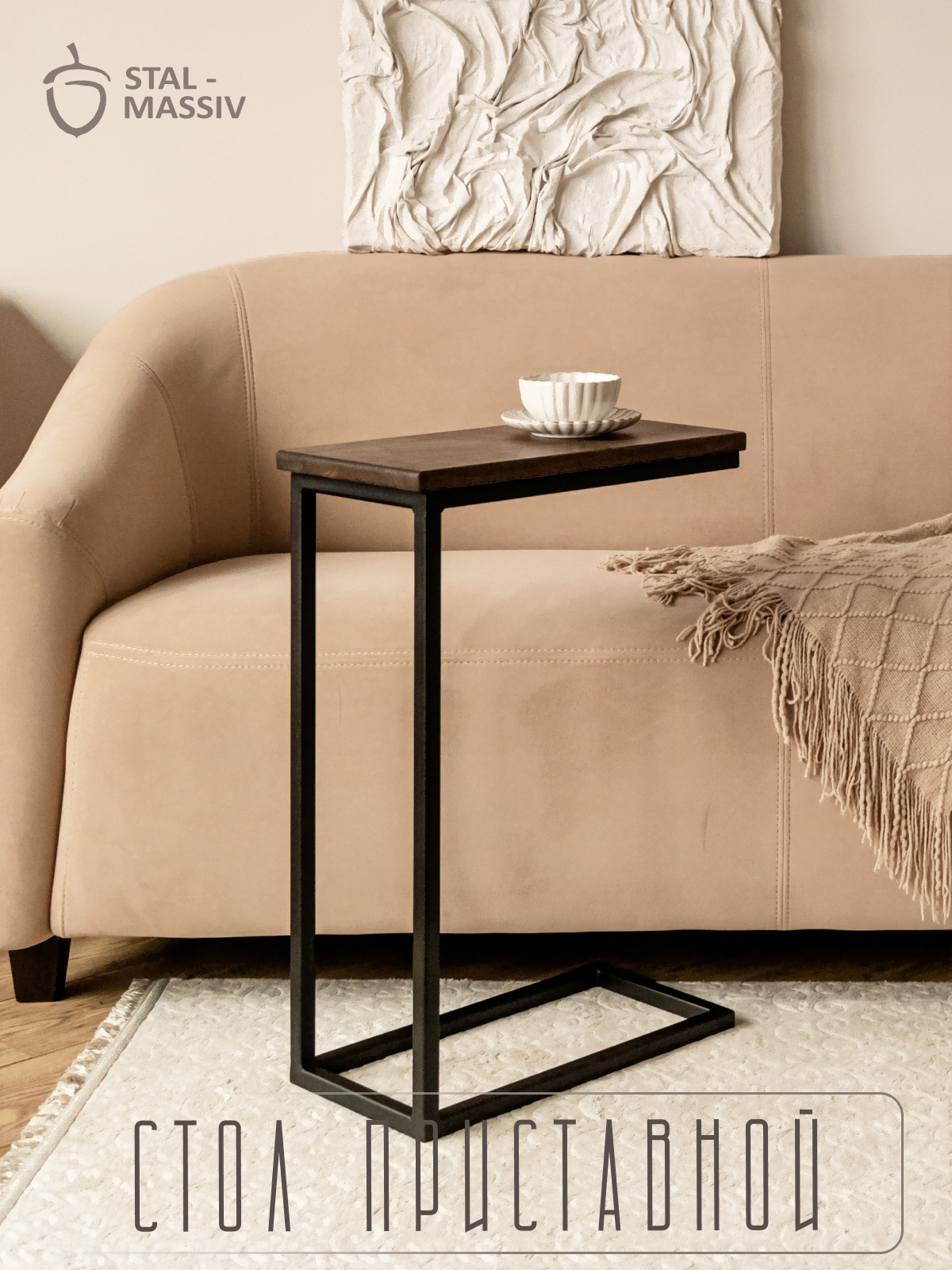 Приставной столик Stal-Massiv 1642-46 (дуб мореный/черный)