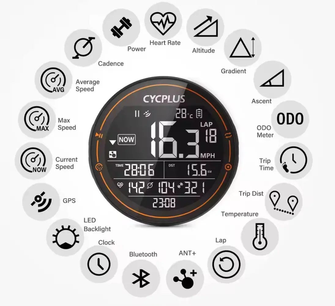 Показаниятекущая скоростьсредняя скоростьмаксимальная скоростьотношение текущая/средняя скоростьтекущая пройденная дистанциясуточная пройденная дистанцияобщая пройденная дистанциятекущее время в путиобщее время в пути