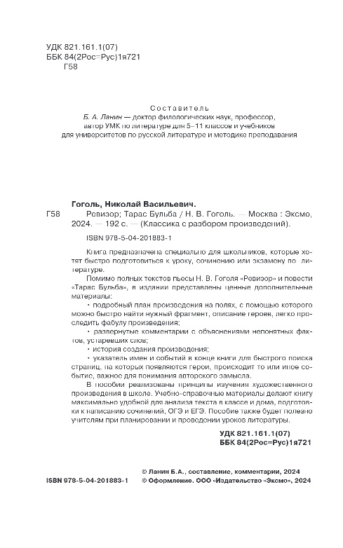 Книга Эксмо Ревизор. Тарас Бульба, мягкая обложка (Гоголь Николай)